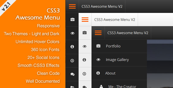 CSS3 Awesome Menu is completely coded using CSS3 and Icon Fonts. No JavaScript are involved. This menu is inspired by the menu from the Google Nexus Site.